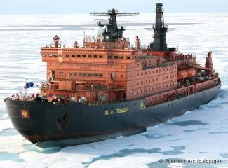 The 50 Years of Victory was built in 2007 and is the largest and most modern nuclear-powered icebreaker in the world. She is a new generation ship, an upgrade of the Arktika-class. Accommodating a maximum of 128 guests and carrying the highest ice class possible (LL1), she is one of the only ships that can undertake a voyage to the North Pole. With 74,000 horsepower generated by two nuclear reactors, the vessel can crush ice up to two and a half metres thick and is the world’s largest and most sophisticated nuclear-powered icebreaker. The 50 Years of Victory is the property of the Russian Federation and has received maritime registration under the name 50 LET POBEDY. |