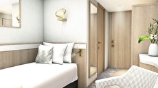 Deck 1 Single Cabin (3) These single cabins are the same size as our standard cabins at 12m². Instead of a double bed, you’ll get a single, as well as a desk and lounge chair. Please note, the cabin image is the planned appearance. |