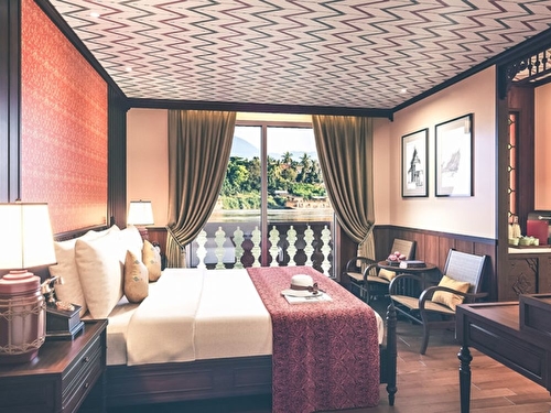 For our scenic cruises along the Upper Mekong River we are delighted to have chartered the Anouvong from our associates at Heritage Line which is due to be launched in September 2020. This luxurious vessel is named after the last ruler of the Kingdom of Vientiane and accommodates just 20 passengers across eight spacious staterooms and two luxurious suites. The atmosphere on board is intimate and the public areas include a spa, restaurant, and a lounge with an expansive terrace deck where there is ample opportunity to watch the world gently pass by as you relax on board your floating hotel.