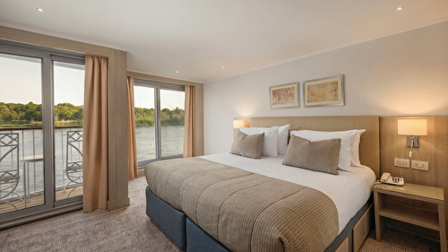 Deck 2 Superior French Balcony Cabin (1) These superior cabins are 15m², and they come with twin beds and a French balcony. All the standard features are included, too, including air-conditioning, a TV, a private bathroom with a shower and a hairdryer, a safety deposit box, a minibar, and tea and coffee making facilities. Please be aware, these images are for illustrative purposes only. The final cabins may differ in design, layout and decor. |