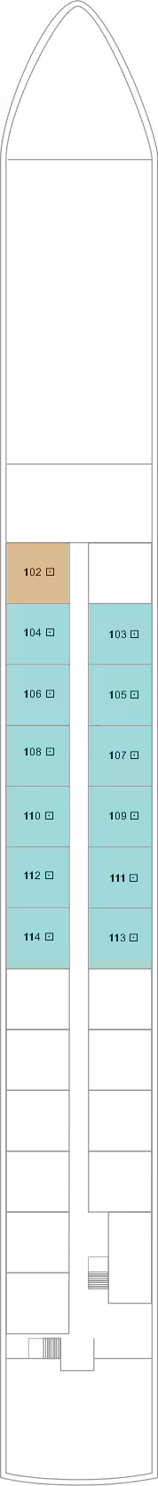 Deck 1 Single Cabin (2) These cabins are ideal if you’re travelling solo. All the standard features are included, like air-conditioning, a TV, a private bathroom with a shower and a hairdryer, a safety deposit box, and tea and coffee making facilities. They measure up at a spacious 13m², and they come with a window, so you can peer out at the scenery. Please be aware, these images are for illustrative purposes only. The final cabins may differ in design, layout and decor. |